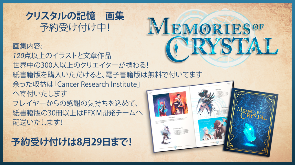 現時点では画集の印刷目標は400冊ですが、状況により数を変更する場合がございます。その中に、370冊分は一般発売用で、残り30冊分は贈り物として開発チーム(日本、北米、欧州チーム)に送ります。注文数は400冊を超えた場合、目標の達成を超えた収益は開発チーム分の追加印刷として支払うことになりますが、更に余る収益は「Cancer Research Institute」への寄付することになります。予約数は300冊から始めますので、達成した場合は紙書籍版が商品として注文したお客様にお届けられることは確定となります。ご了承ください。