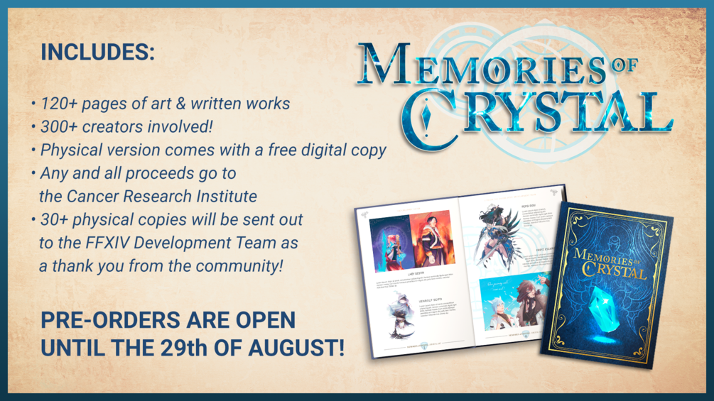 The physical version will only be printed if a certain quota of pre-orders are met, as the initial cost for printing a multitude of books is far too high to cover out of our own pockets. We are unable to guarantee a physical version after placing a pre-order on it because of this, but it is our hope that the project can gain enough spread to let us meet the quota. This is where YOU and everyone else involved can play a crucial role and spread the word about the project. The goal is to print a total of 400 copies of the artbook (subject to change), with at least 370 being available for everyone to grab and the remaining 30 going to the development team (JP, US, EU). Any proceedings that would go above the target quota will simply go to giving the development team more artbooks. Should there be any other proceedings, they will go straight to the Cancer Research Institute. Minimum order is 300 books, so this is where we can guarantee a physical copy being sent out to everyone who ordered.